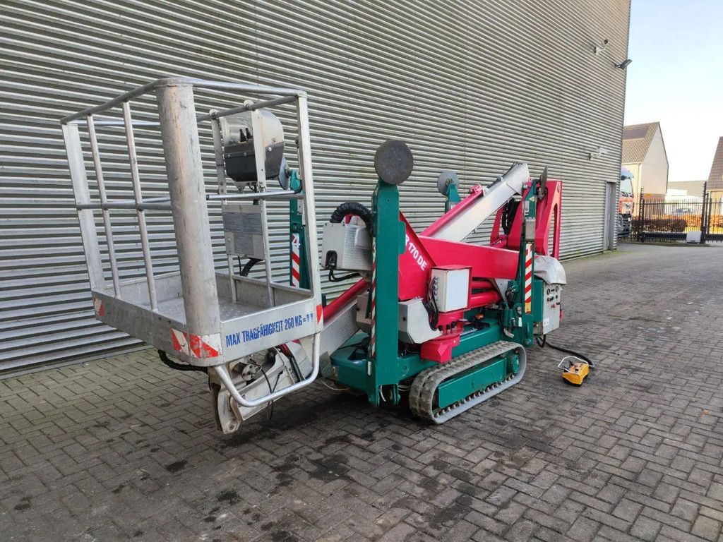 Year: 2012. Hours: 6712. Weight: 2520 kg. CE machine. Max capacity basket: 200 kg / 2 persons + 40 kg. Max working height: 17 meter. Max outreach: 6.7 meter. Diesel. Max lateral force: 400 N. Max wind speed: 12,5 m/s. Max permitted tilt: 2 degree. Rotated basket. Electrical function in basket. 4 point outriggers. Remote Control on cable. Non marking tracks 80%. German machine! ID NR: 166. The General Terms and Conditions of Heinhuis are applicable to all adverts, offers and quotations by Heinhuis, all agreements entered into by Heinhuis and the negotiations preceding them. By any form of response you accept the applicability of the General Terms and Conditions of Heinhuis and you declare that you have taken note of these General Terms and Conditions. Our prices are export netto prices. Für mehr Informationen: |