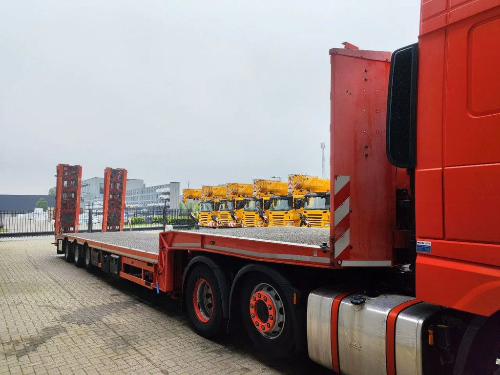 Year: 2014. 10 tons BPW axles. Weight: 12.100 kg. Load capacity: 35.900 kg. Max weight: 48.000 kg. Kingpin load: 18.000 kg. 1st axle liftaxle. 3th axle steering axle. Airsuspension. Slitted floor. Winch. Hydraulic bridge from floor to neck. Hydraulic works on NATO electricty. 2 way hydraulic ramps. Hydraulic from left to right. Toolboxes. Dimmensions: Neck: L: 3750 mm. W: 2550 mm. H: 1440 mm. Kingpin height: 1200 mm. Floor: L: 9730 mm. W: 2550 mm. H: 900-950 mm. Tyres: 235/75R17,5 60-80%. German trailer! ID NR: 639. The General Terms and Conditions of Heinhuis are applicable to all adverts, offers and quotations by Heinhuis, all agreements entered into by Heinhuis and the negotiations preceding them. By any form of response you accept the applicability of the General Terms and Conditions of Heinhuis and you declare that you have taken note of these General Terms and Conditions. Our prices are export netto prices. Für mehr Informationen: |