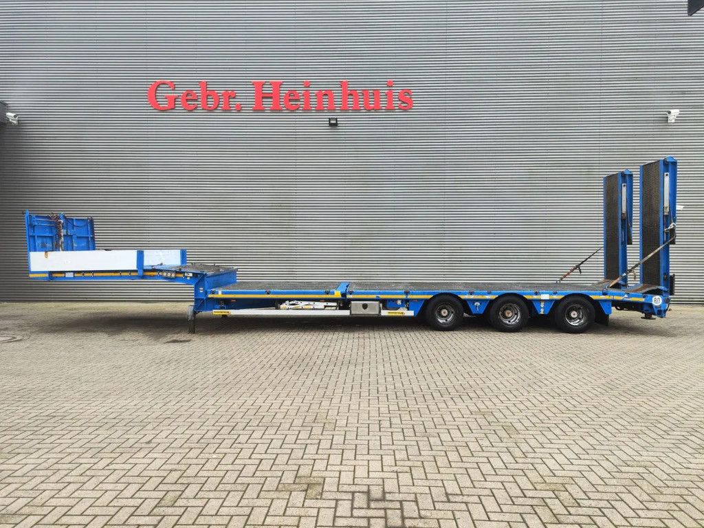 Year: 2016. 10 tons SAF axles. Weight: 12.600 kg. Load capacity: 29.400 kg. Max weight: 42.000 kg. Kingpin load: 18.000 kg. Hydraulic works on NATO. Allu boards on neck. Winch with Remote Control. Hydr. bridge from floor to neck. - Lenght: 3000 mm. Airsuspension. Slitted floor. Powersteering 3 steering axles. 2 point hydraulic outriggers on the back. 2 way hydraulic ramps: - lenght: 2850 + 1750 mm. - hydr. from left to right. Dimmensions: Neck: L: 3750 mm. W: 2500 mm. H: 1350 mm. Kingpin height: 1150 mm. Floor: L: 9600 mm. W: 2500 mm. H: 900 mm. Tyres: 235/75R17,5 80%. German Trailer! ID NR: 437. The General Terms and Conditions of Heinhuis are applicable to all adverts, offers and quotations by Heinhuis, all agreements entered into by Heinhuis and the negotiations preceding them. By any form of response you accept the applicability of the General Terms and Conditions of Heinhuis and you declare that you have taken note of these General Terms and Conditions. Our prices are export netto prices. Für mehr Informationen: |