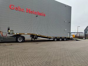 Year: 2013. 10 tons SAF axles. Weight: 12.300 kg. Load Capacity: 29.700 kg. Max weight: 42.000 kg. Kingpin load: 18.000 kg. Powersteering 3 steering axles. Slitted floor. Winch. Allu boards on neck. Hydraulic from trailer works on NATO. Radio remote Control. Airsuspension. Hydraulic bridge from floor to neck. Length: 3000 mm. 2 point hydraulic outriggers on the back. 2 way hydraulic ramps: Lenght: 2800 + 1700 mm. Dimmensions: Neck: L: 3750 mm. W: 2500 mm. H: 1380 mm. Kingpin height: 1150 mm. Floor: L: 9600 mm. W: 2550 mm. H: 900 mm. Tyres: 245/70R17,5 80%. ID NR: 676. The General Terms and Conditions of Heinhuis are applicable to all adverts, offers and quotations by Heinhuis, all agreements entered into by Heinhuis and the negotiations preceding them. By any form of response you accept the applicability of the General Terms and Conditions of Heinhuis and you declare that you have taken note of these General Terms and Conditions. Our prices are export netto prices. Für mehr Informationen: |