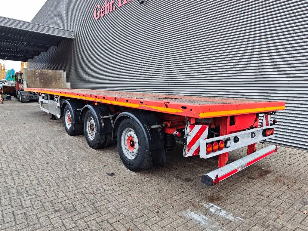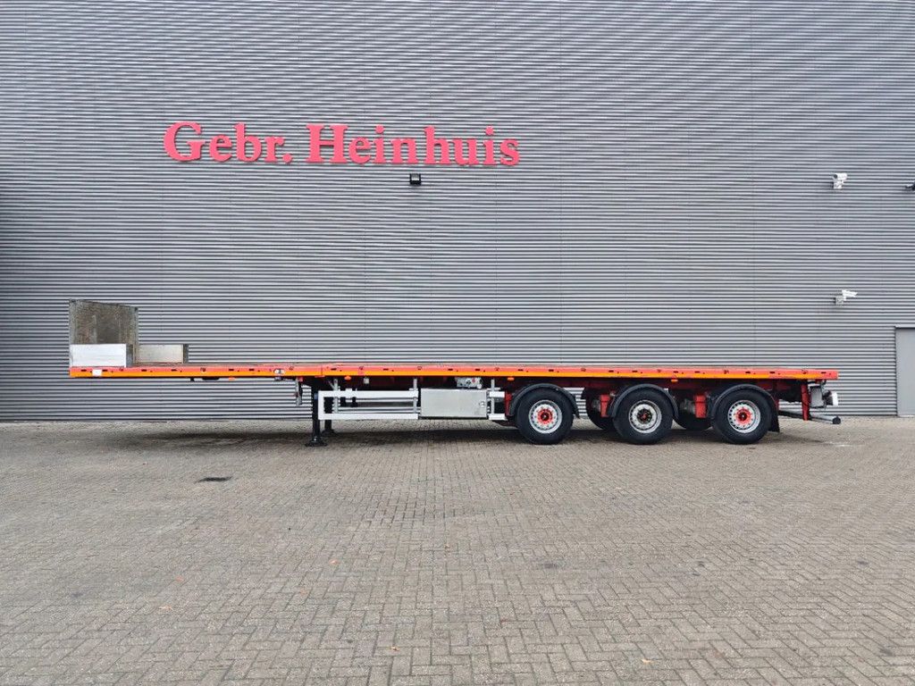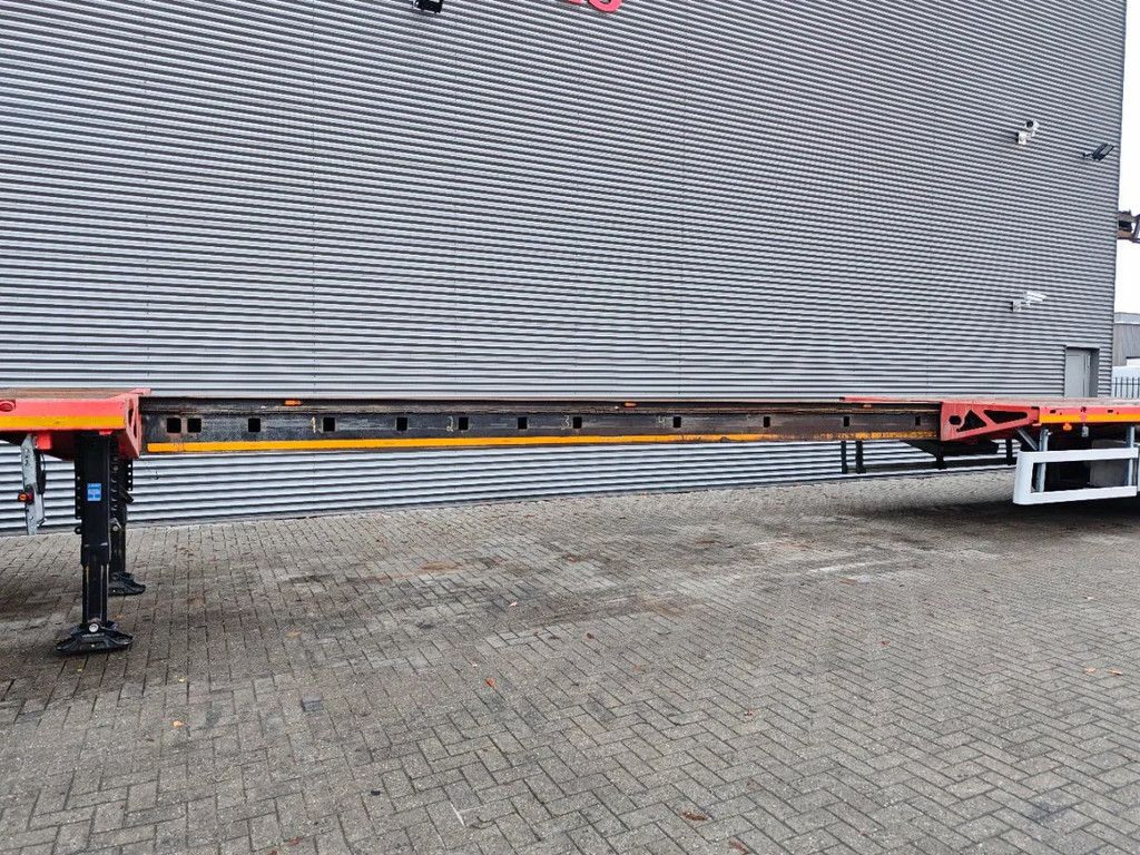 Year: 2016. 9 Tons SAF axles. Weight: 9030 kg. Max weight: 45.000 kg. Kingpinload: 18.000kg. 7.5 meter extandable. Hydraulic works on NATO from the truck. EBS ABS ALB. Radio remote control. Powersteering 3 steering axles. Airsuspension. Preperation for twistlocks. Dimmensions floor: L: 13.600 mm. W: 2550 mm. H: 1480 mm. Tyres: 385/65R22,5 50%. ID NR: 561. The General Terms and Conditions of Heinhuis are applicable to all adverts, offers and quotations by Heinhuis, all agreements entered into by Heinhuis and the negotiations preceding them. By any form of response you accept the applicability of the General Terms and Conditions of Heinhuis and you declare that you have taken note of these General Terms and Conditions. Our prices are export netto prices. Für mehr Informationen: |