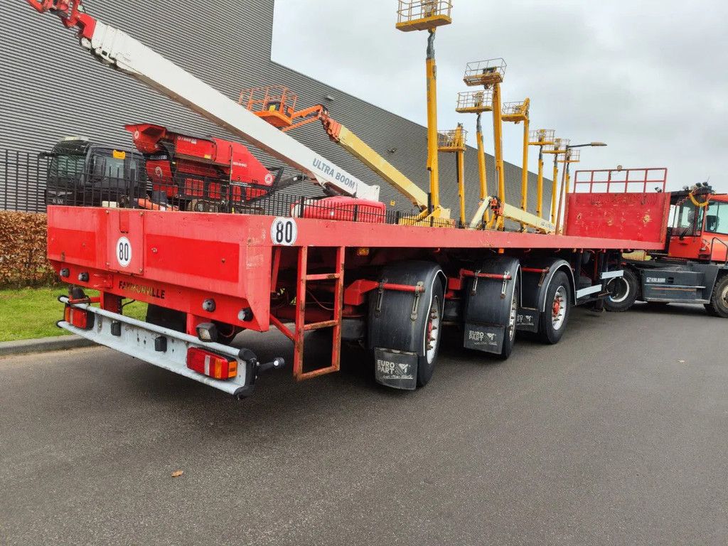 Year: 2000. Mercedes Benz axles. Powersteering 2nd and 3th axles steering axles. Airsuspension. 7.4 meter extandable. Sparetyre. Central greasing system. 2 x 12.5 cm betweentable. ABS. Toolboxes. Dimmensions floor: L: 13.480 mm. W: 2550 mm. H: 1450 mm. Kingpin height: 1200 mm. Tyres: 385/55R22,5 70%. German Trailer! ID NR: 501. The General Terms and Conditions of Heinhuis are applicable to all adverts, offers and quotations by Heinhuis, all agreements entered into by Heinhuis and the negotiations preceding them. By any form of response you accept the applicability of the General Terms and Conditions of Heinhuis and you declare that you have taken note of these General Terms and Conditions. Our prices are export netto prices. Voor meer Informatie: |