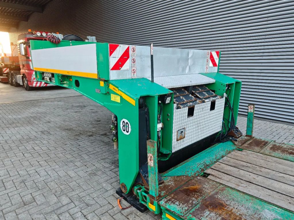 Year: 2013. 10 tons SAF axles. Max weight: 55.000 kg. Kingpin load: 25.000 kg. 5 Meter Extandable. 2 x 25 cm widened. Hydraulic works on NATO from the truck. Hydr. detachable gooseneck. Allu boards + toolbox on neck. Radio Remote Control. 4 detachable floor parts. Airsuspension. Powersteering. Tyres: 245/70R17,5 70%. Dimmensions: Neck: L: 3900 mm. W: 2500 mm. H: 1500 mm. Kingpin height: 1250 mm. Floor: L: 7500 mm. W: 2550 mm. H: 370 mm. Thickness floor: 220 mm. Backside trailer: L: 4150 mm. W: 2550 mm. H: 950 mm. German Trailer! ID NR: 489. The General Terms and Conditions of Heinhuis are applicable to all adverts, offers and quotations by Heinhuis, all agreements entered into by Heinhuis and the negotiations preceding them. By any form of response you accept the applicability of the General Terms and Conditions of Heinhuis and you declare that you have taken note of these General Terms and Conditions. Our prices are export netto prices. Voor meer Informatie: |