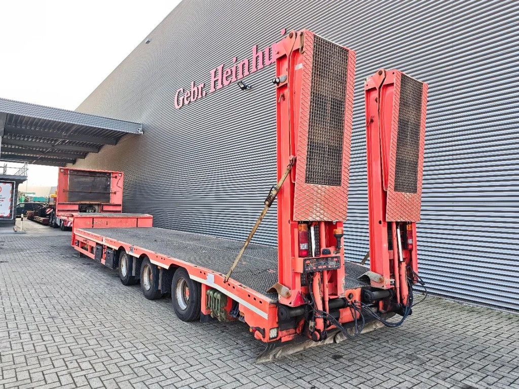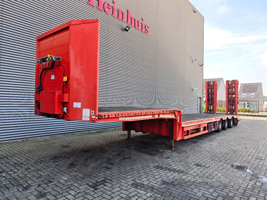Year: 2016. 10 tons BPW axles. Weight: 12.000 kg. Load capacity: 36.000 kg. Max weight: 48.000 kg. Kingpin load: 18.000 kg. Hydraulic from trailer works on NATO. Winch. Slitted floor. 1st axle liftaxle. 3th axle steering axle (reibungsgelenkt - nachlaufgelenkt). Airsuspension. Hydraulic bridge from floor - neck. - Lenght: 3450 mm. Toolboxes. 2 way hydraulic ramps: - Hydraulic from left - right. - lenght: 2700 + 1900 mm. EBS ABS ALB. Dimmensions: Neck: L: 3730 mm. W: 2550 mm. H: 1350 mm. Kingpin height: 1150 mm. Floor: L: 9750 mm. W: 2550 mm. H: 900 mm. 2 x Radio Remote. Tyres: 235/75R17,5 50-80%. German Trailer! ID NR: 534. The General Terms and Conditions of Heinhuis are applicable to all adverts, offers and quotations by Heinhuis, all agreements entered into by Heinhuis and the negotiations preceding them. By any form of response you accept the applicability of the General Terms and Conditions of Heinhuis and you declare that you have taken note of these General Terms and Conditions. Our prices are export netto prices. Voor meer Informatie: |
