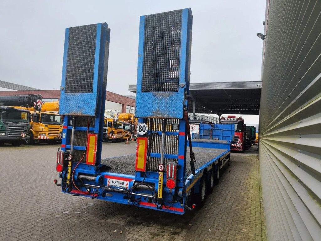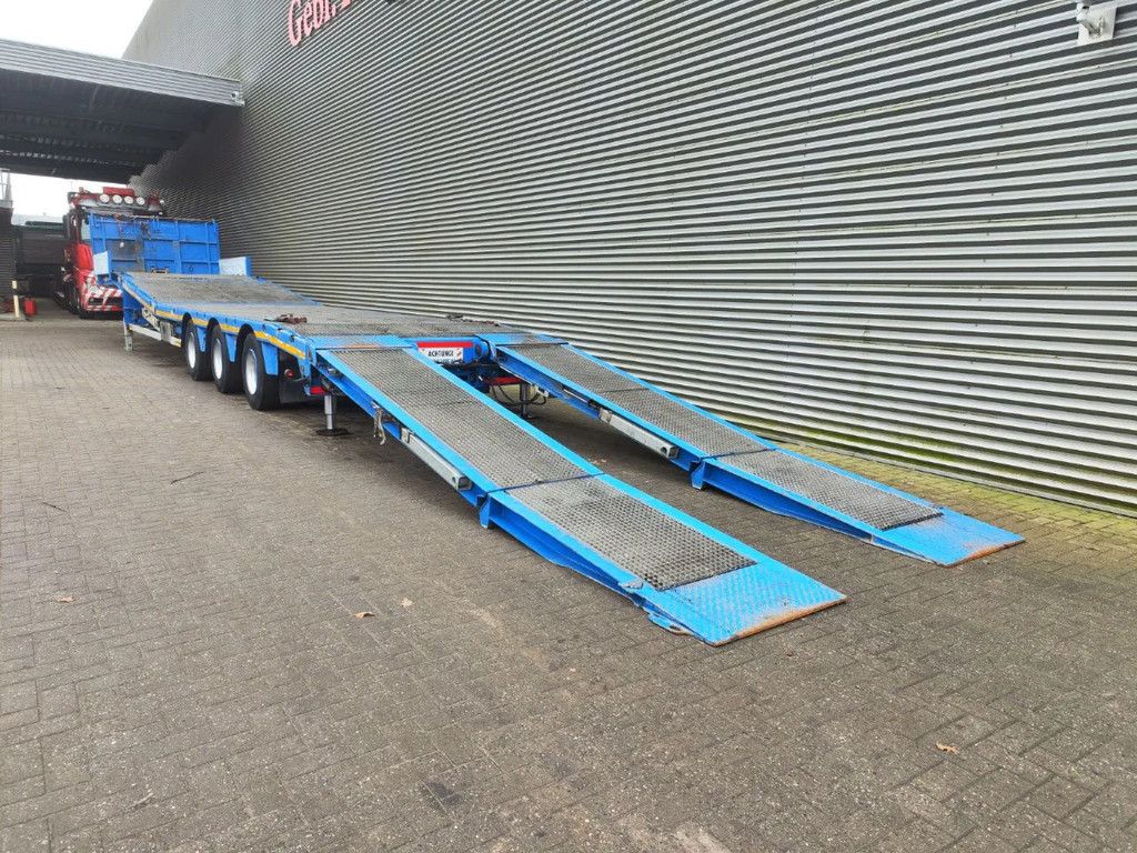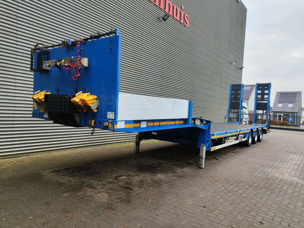 Year: 2016. 10 tons SAF axles. Max weight: 42.000 kg. Kingpin load: 18.000 kg. Powersteering 3 steering axles. Airsuspension. Winch. EBS ABS ALB. Hydraulic works on Duplo electricty. Hydraulic bridge from floor to neck. Lenght: 3000 mm. Central greasing system. 2 point hydraulic outriggers on the back. 2 way hydraulic ramps: - hydraulic from left to right. - lenght: 2800 + 1700 mm. Dimmensions: Neck: L: 3800 mm. W: 2480 mm. H: 1400 mm. Kingpin load: 1150 mm. Floor: L: 9600 mm. W: 2550 mm. H: 900 mm. Tyres: 235/75R17,5 70%. German Trailer! ID NR: 449. The General Terms and Conditions of Heinhuis are applicable to all adverts, offers and quotations by Heinhuis, all agreements entered into by Heinhuis and the negotiations preceding them. By any form of response you accept the applicability of the General Terms and Conditions of Heinhuis and you declare that you have taken note of these General Terms and Conditions. Our prices are export netto prices. For more information: |