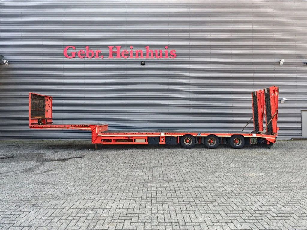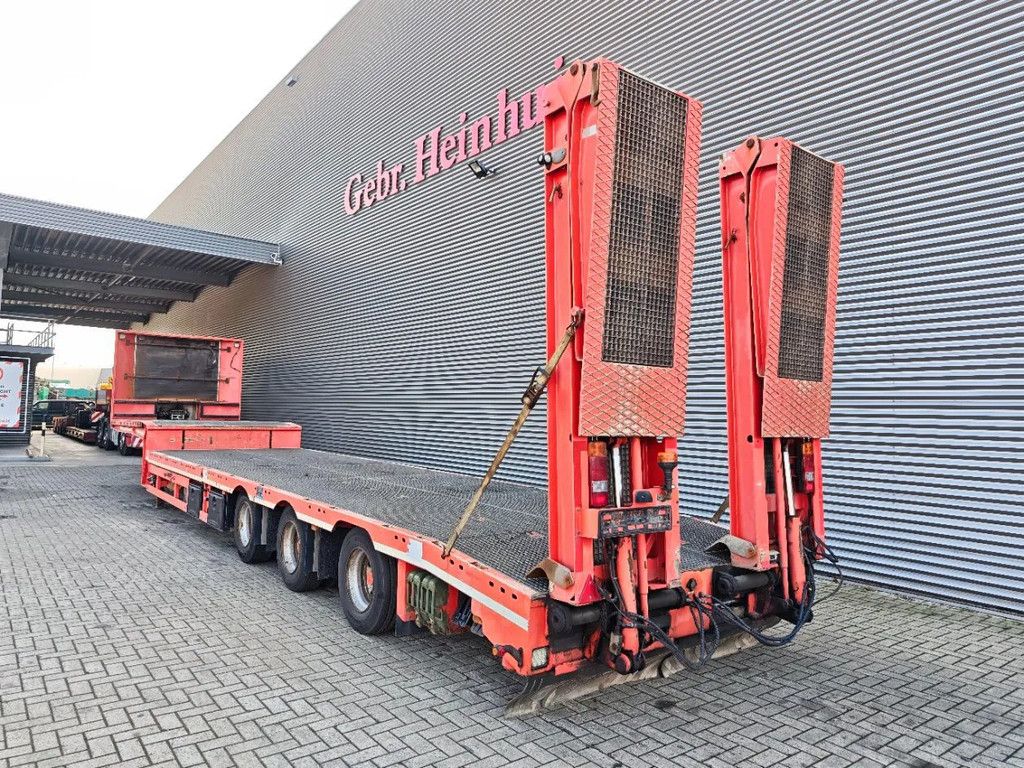 Year: 2016. 10 tons BPW axles. Weight: 12.000 kg. Load capacity: 36.000 kg. Max weight: 48.000 kg. Kingpin load: 18.000 kg. Hydraulic from trailer works on NATO. Winch. Slitted floor. 1st axle liftaxle. 3th axle steering axle (reibungsgelenkt - nachlaufgelenkt). Airsuspension. Hydraulic bridge from floor - neck. - Lenght: 3450 mm. Toolboxes. 2 way hydraulic ramps: - Hydraulic from left - right. - lenght: 2700 + 1900 mm. EBS ABS ALB. Dimmensions: Neck: L: 3730 mm. W: 2550 mm. H: 1350 mm. Kingpin height: 1150 mm. Floor: L: 9750 mm. W: 2550 mm. H: 900 mm. 2 x Radio Remote. Tyres: 235/75R17,5 50-80%. German Trailer! ID NR: 534. The General Terms and Conditions of Heinhuis are applicable to all adverts, offers and quotations by Heinhuis, all agreements entered into by Heinhuis and the negotiations preceding them. By any form of response you accept the applicability of the General Terms and Conditions of Heinhuis and you declare that you have taken note of these General Terms and Conditions. Our prices are export netto prices. For more information: |