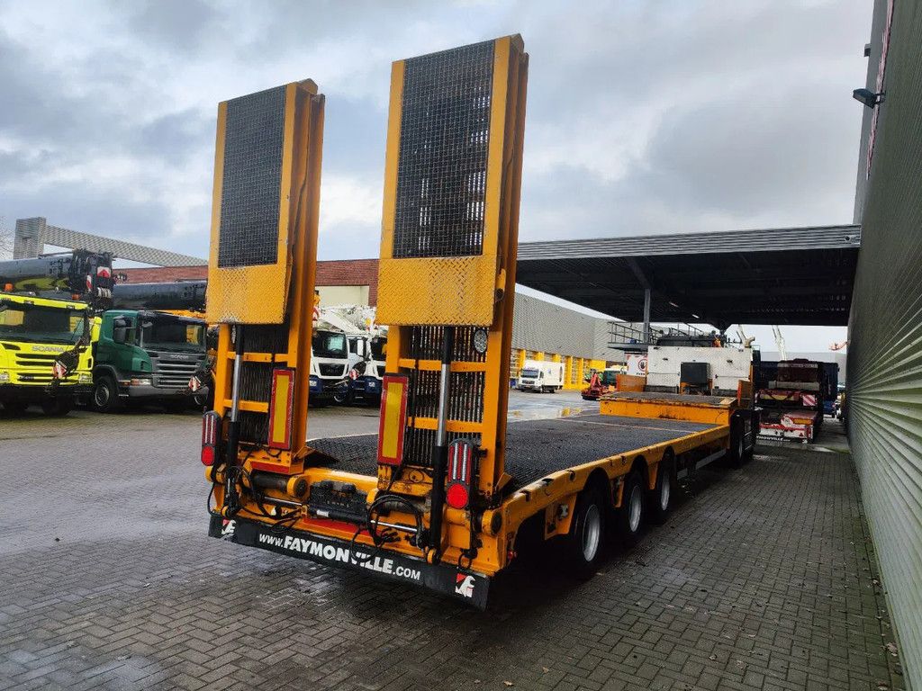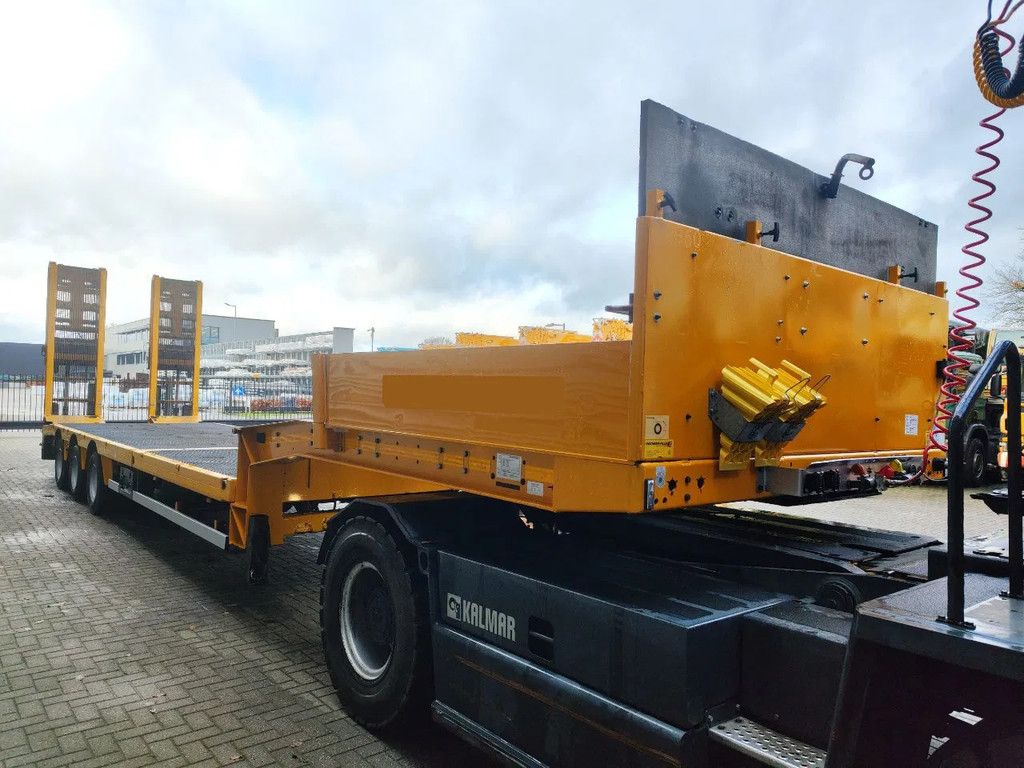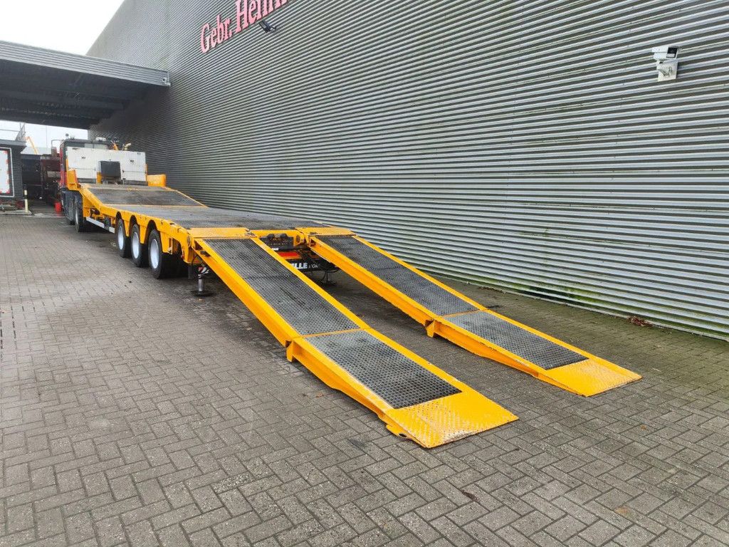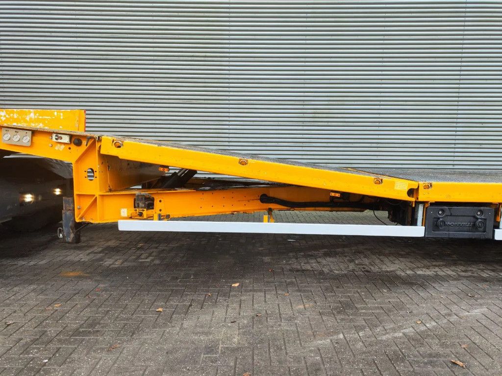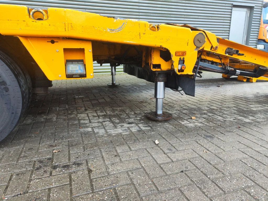 Year: 2013. 10 tons SAF axles. Weight: 12.300 kg. Load Capacity: 29.700 kg. Max weight: 42.000 kg. Kingpin load: 18.000 kg. Powersteering 3 steering axles. Slitted floor. Winch. Allu boards on neck. Hydraulic from trailer works on NATO. Radio remote Control. Airsuspension. Hydraulic bridge from floor to neck. Length: 3000 mm. 2 point hydraulic outriggers on the back. 2 way hydraulic ramps: Lenght: 2800 + 1700 mm. Dimmensions: Neck: L: 3750 mm. W: 2500 mm. H: 1380 mm. Kingpin height: 1150 mm. Floor: L: 9600 mm. W: 2550 mm. H: 900 mm. Tyres: 245/70R17,5 80%. ID NR: 436. The General Terms and Conditions of Heinhuis are applicable to all adverts, offers and quotations by Heinhuis, all agreements entered into by Heinhuis and the negotiations preceding them. By any form of response you accept the applicability of the General Terms and Conditions of Heinhuis and you declare that you have taken note of these General Terms and Conditions. Our prices are export netto prices. For more information: |