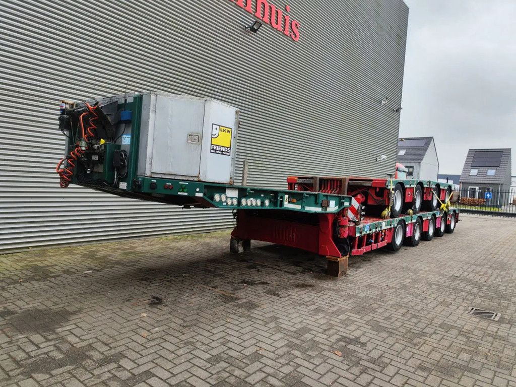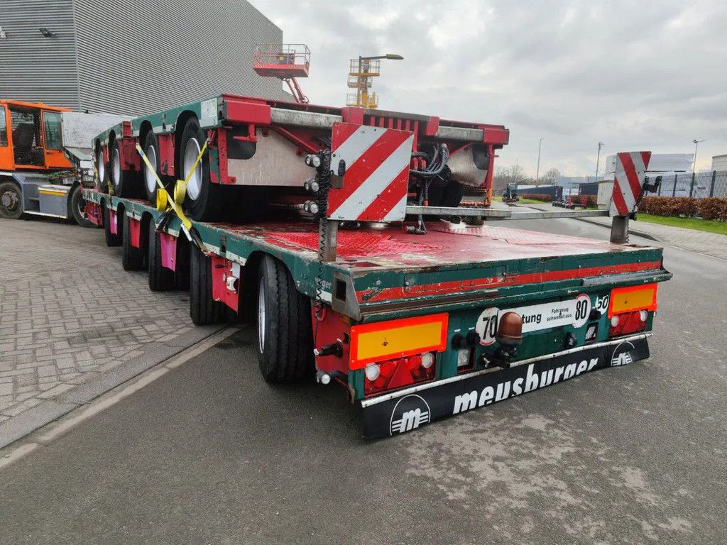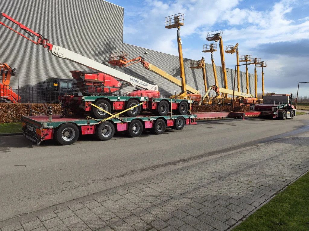 Year: 2013. 12 tons Gigant axles. Weight: 19.860 kg. Max weight: 84.000-108.000 kg. Kingpin load: 18.000-24.000 kg. Hydr. gooseneck. Hydraulic works on NATO. EBS ABS ALB. Toolbox on neck. Central greasing system. 2 x 6 meter extandable. Total 12 meter extand! 2 x 25 cm widened. Hydr. suspension. 1st axle liftaxle. Powersteering all axles steering axles. Dimmensions: Neck: L: 3900 mm. W: 2550 mm. H: 1500 mm. Kingpin height: 1250 mm. Floor: (5 axles) L: 9500 mm. W: 2550 mm. H: 900 mm. 2 x Meusburger MUA-2. 12 tons gigant axles. Max weight 24.000 kg. Lenght floor: 3200 mm (x2). Tyres: 245/70R17,5 80%. ID NR: 450. The General Terms and Conditions of Heinhuis are applicable to all adverts, offers and quotations by Heinhuis, all agreements entered into by Heinhuis and the negotiations preceding them. By any form of response you accept the applicability of the General Terms and Conditions of Heinhuis and you declare that you have taken note of these General Terms and Conditions. Our prices are export netto prices. For more information: |