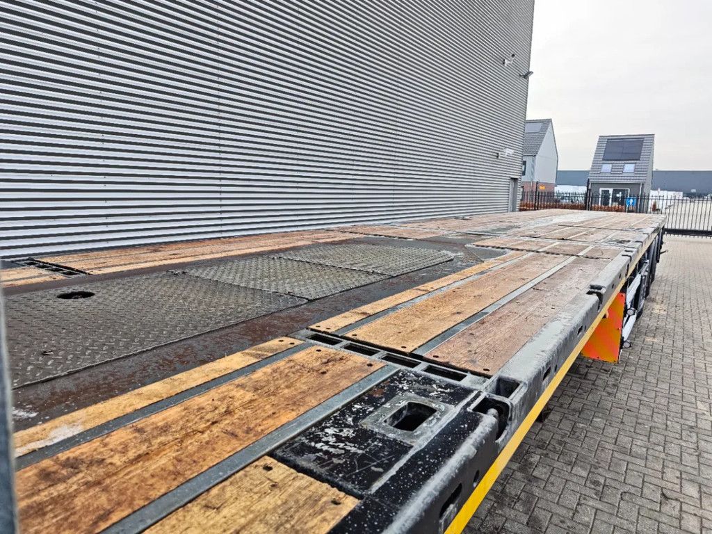 Year: 2017. 9 tons SAF axles. Max weight: 45.000 kg. Kingpin load: 18.000 kg. 7.3 meter extandable. Powersteering 3 steering axles. Airsuspension. Radio Remote Control. Preperation for twistlocks. Dimmensions floor: L: 13.600 mm. W: 2550 mm. H: 1350 mm. Kingpin height: 1200 mm. Tyres: 385/65R22,5 80%. ID NR: 672. The General Terms and Conditions of Heinhuis are applicable to all adverts, offers and quotations by Heinhuis, all agreements entered into by Heinhuis and the negotiations preceding them. By any form of response you accept the applicability of the General Terms and Conditions of Heinhuis and you declare that you have taken note of these General Terms and Conditions. Our prices are export netto prices. For more information: |