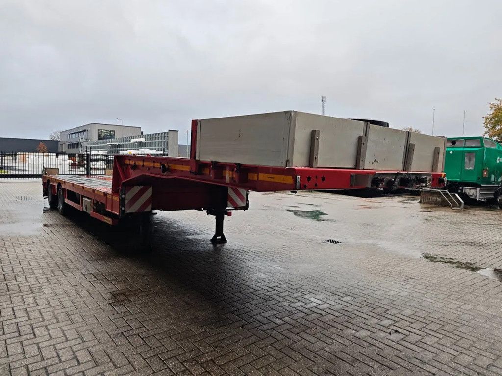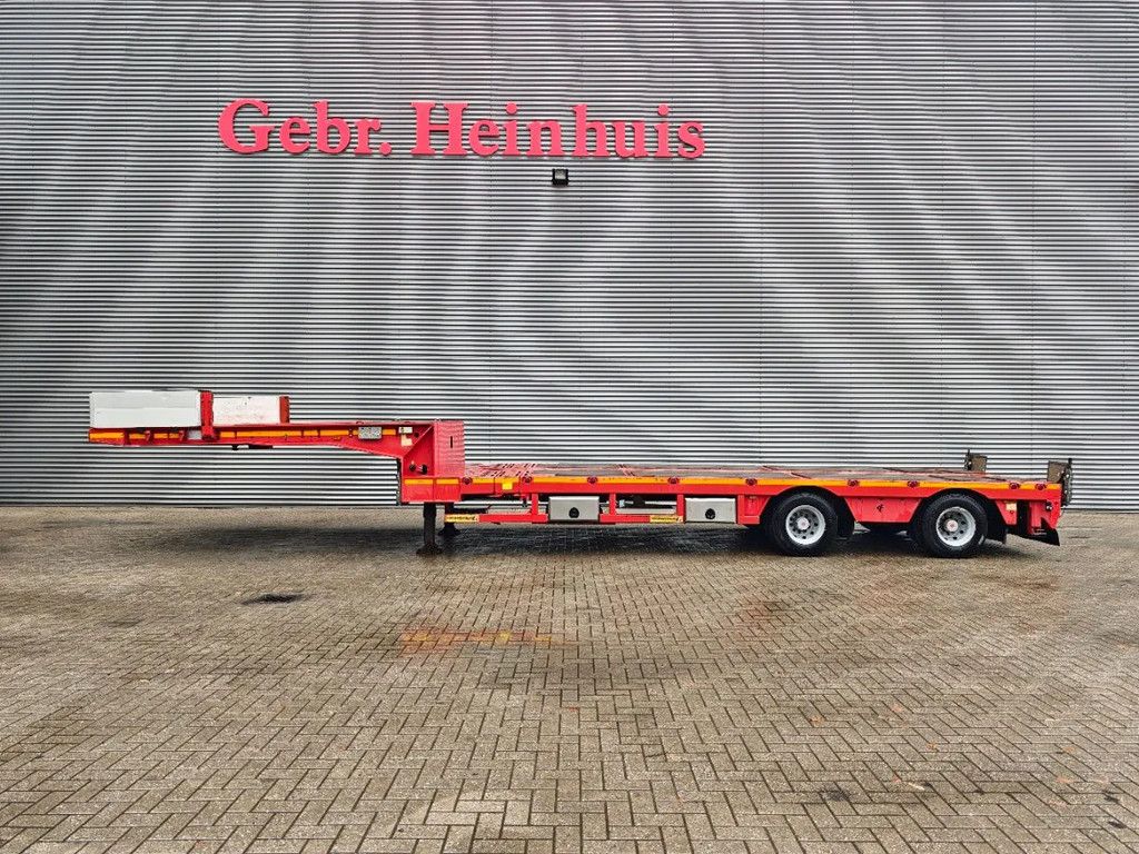 Year: 2014. 11.2 tons SAF axles. Weight: 11.300 kg. Load capacity: 36.100 kg. Max weight: 47.400 kg. Kingpin load: 25.000 kg. 2 x extandable: 1: 4.60 meter. 2: 4.60 meter. Total 9.2 meter extandable. Powersteering 2 steering axles. Airsuspension. Radio Remote Control. Hydraulic works on NATO from the truck. Zink coated. Dimmensions: Neck: L: 4000 mm. W: 2480 mm. H: 1600 mm. Kingpin height: 1350 mm. Floor: L: 7500 mm. W: 2550 mm. H: 950 mm. Tyres: 235/75R17,5 80%. ID NR: 491. The General Terms and Conditions of Heinhuis are applicable to all adverts, offers and quotations by Heinhuis, all agreements entered into by Heinhuis and the negotiations preceding them. By any form of response you accept the applicability of the General Terms and Conditions of Heinhuis and you declare that you have taken note of these General Terms and Conditions. Our prices are export netto prices. For more information: |
