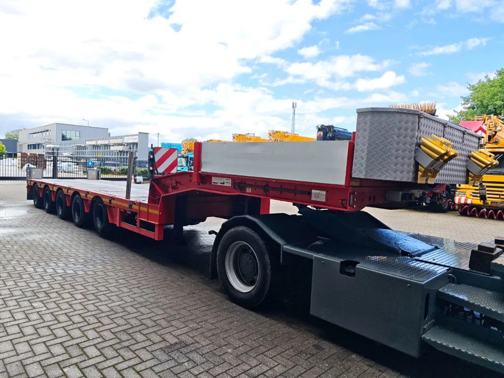 Year: 2011. 10 tons SAF axles. Weight: 14.800 kg. Load capacity: 65.200 kg. Max weight: 80.000 kg. Kingpin load: 30.000 kg. 7 meter extandable. 2 x 25 cm widened. Hydraulic from trailer works on NATO. Allu boards + toolbox on neck. Radio Remote Control. Betweentable: 30 cm. Preperation for twistlocks. 1st axle liftaxle. Powersteering 2nd,3th,4th and 5th axles steering axles. Airsuspension. Dimmensions: Neck: L: 3700 mm. W: 2480 mm. H: 1500 mm. Kingpin height: 1300 mm. Floor: L: 8900 mm. W: 2550 mm. H: circa 950 mm. Tyres: 235/75R17,5 50-80%. German Trailer! ID NR: 471. The General Terms and Conditions of Heinhuis are applicable to all adverts, offers and quotations by Heinhuis, all agreements entered into by Heinhuis and the negotiations preceding them. By any form of response you accept the applicability of the General Terms and Conditions of Heinhuis and you declare that you have taken note of these General Terms and Conditions. Our prices are export netto prices. For more information: |