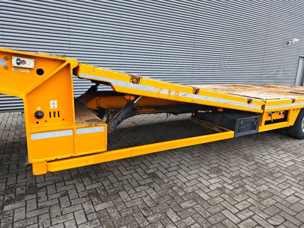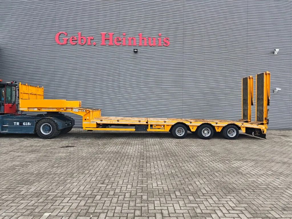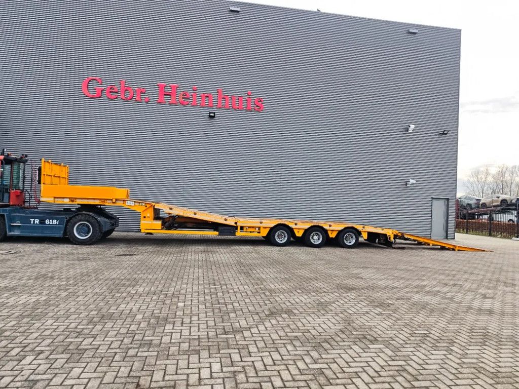 Year: 2013. 8-12 tons SAF axles. Weight: 13.400 kg. Load capacity: 47.600 kg. Max weight: 61.000 kg. Kingpin load: 25.000 kg. Powersteering 3 steering axles. Hydraulic works on NATO. EBS ABS ALB. Hydraulic bridge from floor - neck. Lenght bridge: 3000 mm. Airsuspension. 2 point hydraulic outriggers on the back. 2 way hydraulic ramps: - lenght: 2800 + 1700 mm. - hydraulic from left to right. Winch. Dimmensions: Neck: L: 3700 mm. W: 2500 mm. H: 1450 mm. Kingpin height: 1250 mm. Floor: L: 9200 mm. W: 2550 mm. H: 900 mm. Tyres: 245/70R17,5 70%. ID NR: 668. The General Terms and Conditions of Heinhuis are applicable to all adverts, offers and quotations by Heinhuis, all agreements entered into by Heinhuis and the negotiations preceding them. By any form of response you accept the applicability of the General Terms and Conditions of Heinhuis and you declare that you have taken note of these General Terms and Conditions. Our prices are export netto prices. For more information: |
