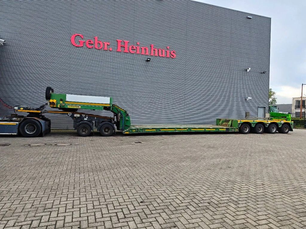 Year: 2015. 10 tons SAF axles. Weight: 22.250 kg. Load Capacity: 57.750 kg. Max weight: 80.000 kg. Kingpin load: 40.000 kg. EBS ABS ALB. Hydraulic works on NATO from the truck. Allu boards on gooseneck. Hydr. detachable gooseneck. Airsuspension. 5 meter extandable. Radio Remote Control. Excavator bridge: 5600 mm x 950 mm. Tyres: 235/75R17,5 80%. Dimmensions: Neck: L: 4900 mm. W: 2500 mm. H: 1800 mm. Kingpin height: 1300 mm. Floor: L: 8000 mm. W: 2750 mm. H: 500 mm. Thickness floor: 300 mm. Backside trailer: L: 5600 mm. W: 2750 mm. H: 1050 mm. Dolly D-2. Year: 2015. 10 tons SAF axles. Weight: 3650 kg. Max weight: 36.100 kg. Kingpin load: 16.100 kg. Airsuspension. Tyres: 235/75R17,5 70%. German Trailer! 4 Pieces available! ID NR: 484. The General Terms and Conditions of Heinhuis are applicable to all adverts, offers and quotations by Heinhuis, all agreements entered into by Heinhuis and the negotiations preceding them. By any form of response you accept the applicability of the General Terms and Conditions of Heinhuis and you declare that you have taken note of these General Terms and Conditions. Our prices are export netto prices. For more information: |